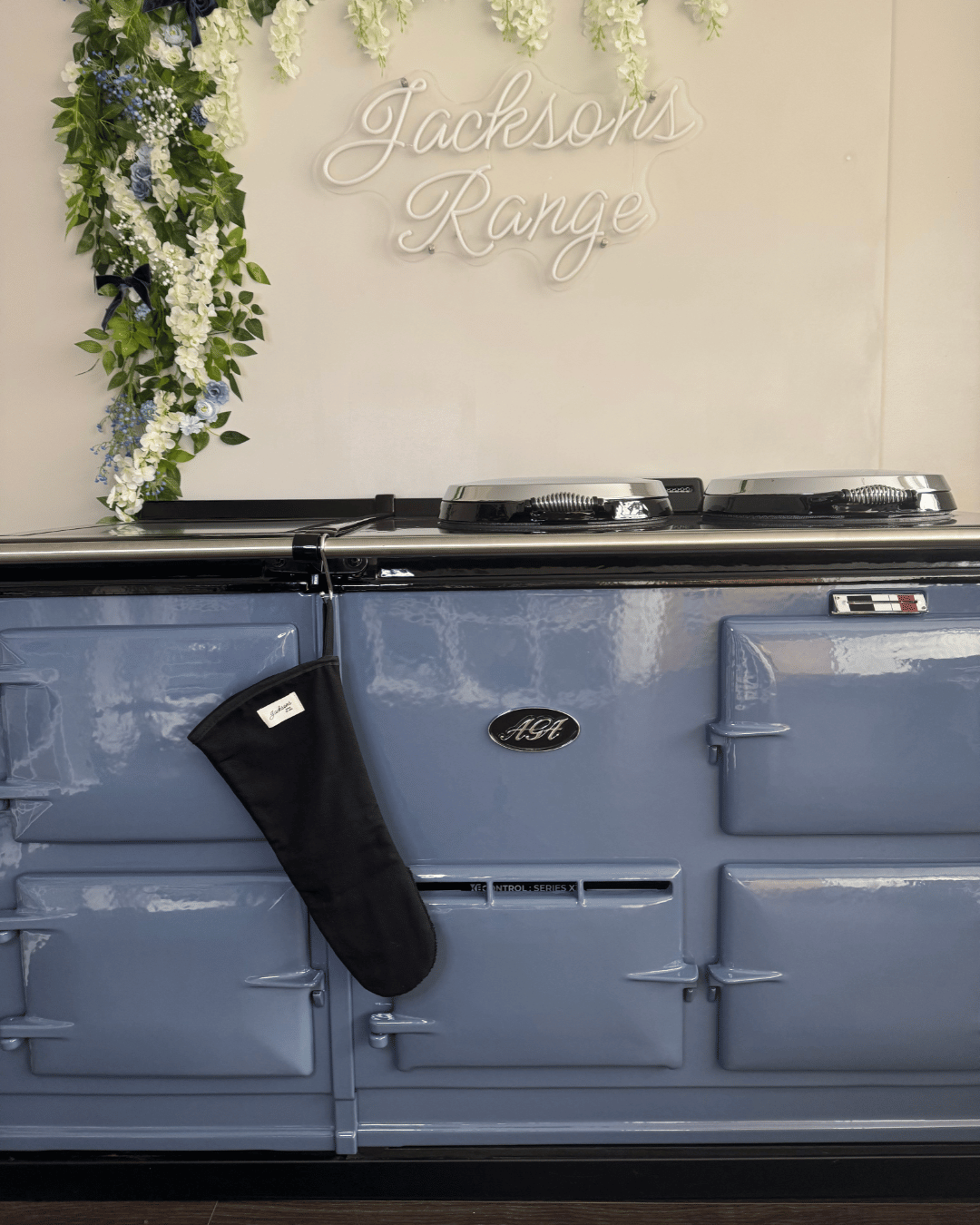 Introducing our ‘All things Pure’ textiles collection. A beautiful solid black Gauntlet for any range cooker owner! Our pure and simple design can be matched with insulated hob covers, hanging towels and tea towels! These gauntlets are 44cm long, providing mid-arm protection when reaching deep into the oven, meaning it is well-suited to reach into the ovens of range cookers. Extremely high quality including a steam block barrier, made from 100% cotton, and very easy to use with an integral thumb grip providing extra maneuverability. Bringing a homely feel to any style of kitchen, finished with our ‘Jacksons Ranges’ woven cotton label.