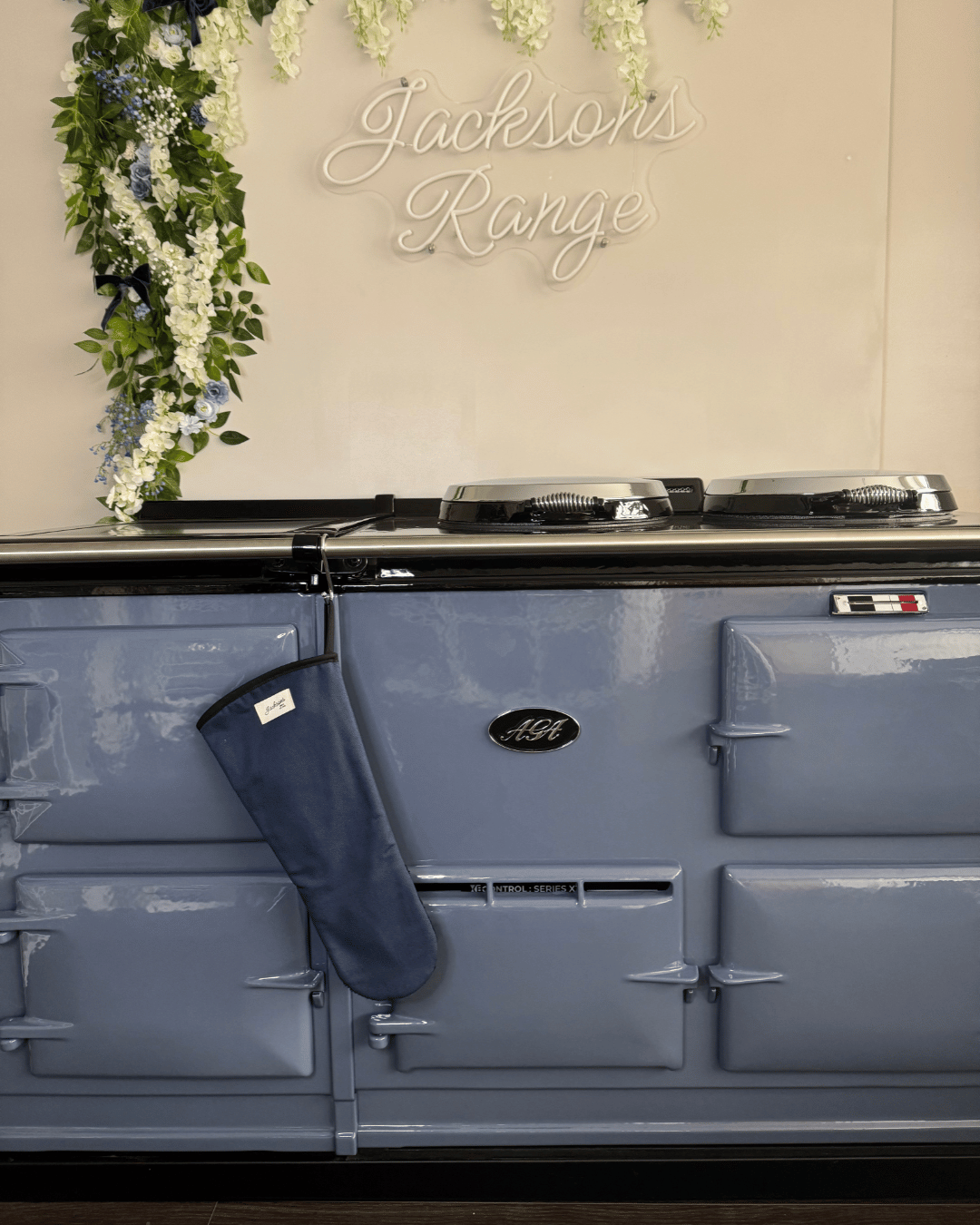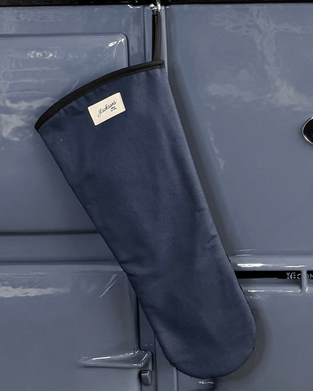 Introducing our ‘All things Pure’ textiles collection. A beautiful solid blue Gauntlet for any range cooker owner! Our pure and simple design can be matched with insulated hob covers, hanging towels and tea towels! These gauntlets are 44cm long, providing mid-arm protection when reaching deep into the oven, meaning it is well-suited to reach into the ovens of range cookers. Extremely high quality including a steam block barrier, made from 100% cotton, and very easy to use with an integral thumb grip providing extra maneuverability. Bringing a homely feel to any style of kitchen, finished with our ‘Jacksons Ranges’ woven cotton label.