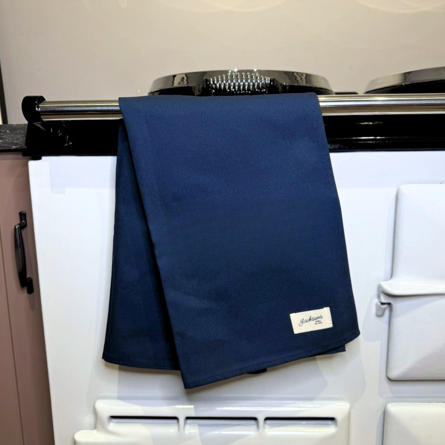 Introducing our ‘All things Pure’ textiles collection. A beautiful solid blue tea towel for any range cooker owner! Our pure and simple design can be matched with insulated hob covers, hanging towels and gauntlets! Extremely high quality, made from 100% cotton, and a loop located on the top left corner to hang up easily. Bringing a homely feel to any style of kitchen, finished with our ‘Jacksons Ranges’ woven cotton label.