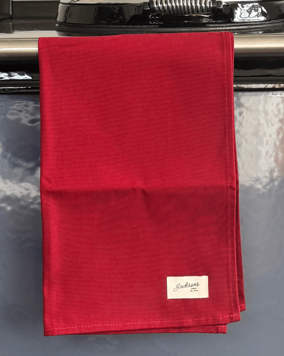 Introducing our ‘All things Pure’ textiles collection. A beautiful solid red tea towel for any range cooker owner! Our pure and simple design can be matched with insulated hob covers, hanging towels and gauntlets! Extremely high quality, made from 100% cotton, and a loop located on the top left corner to hang up easily. Bringing a homely feel to any style of kitchen, finished with our ‘Jacksons Ranges’ woven cotton label.