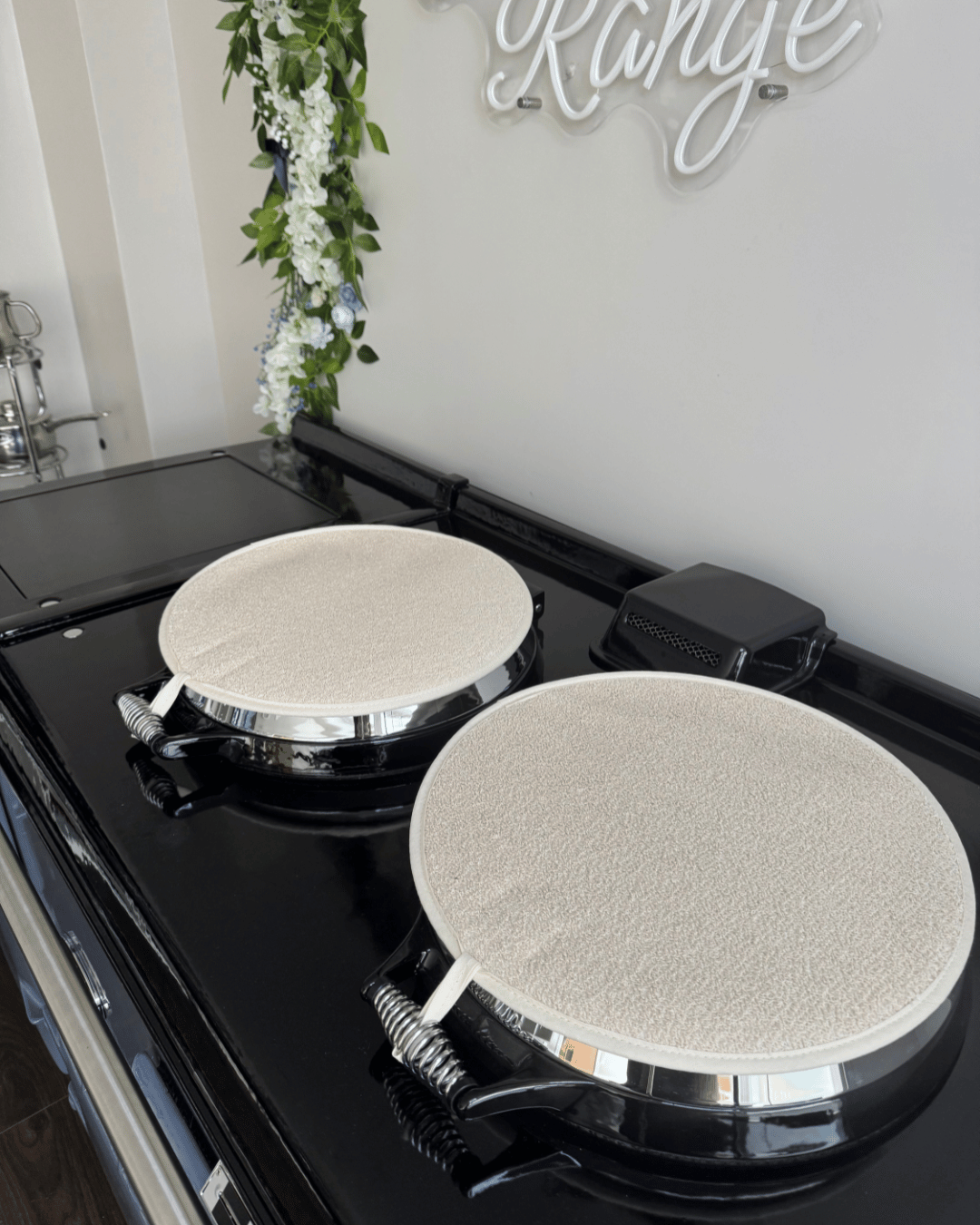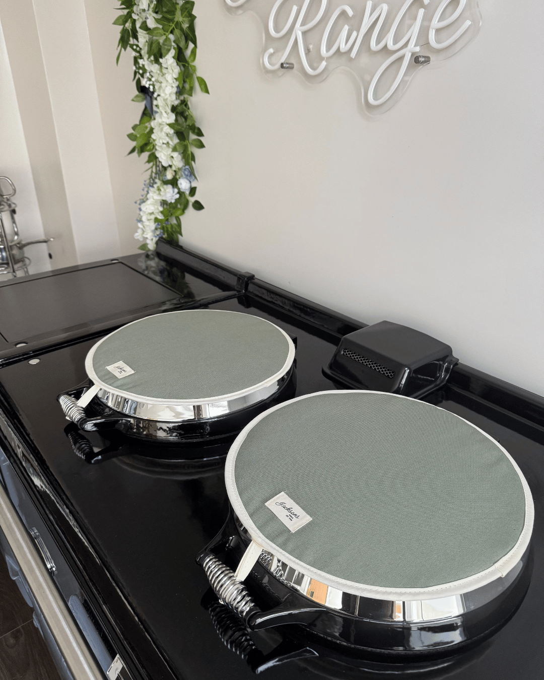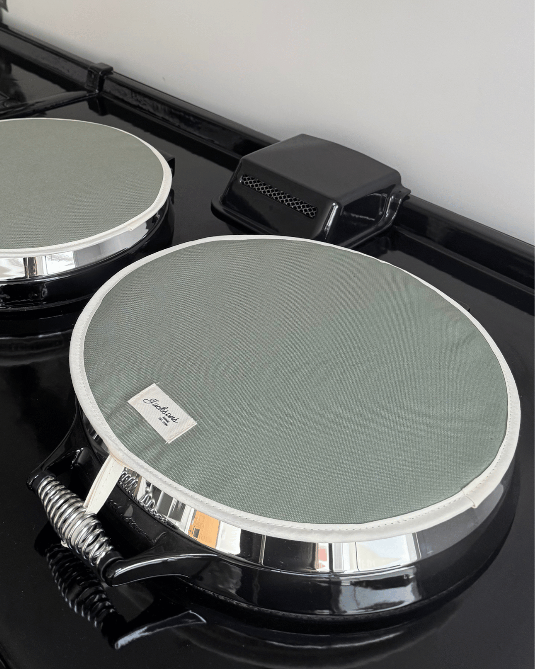 Introducing our ‘All things Pure’ textiles collection. A beautiful solid sage Hob covers for any AGA cooker owner! Our pure and simple design can be matched with gauntlets, hanging towels and tea towels! Highly insulating design, that creates a steam barrier and protects your lids. Made in the UK with 100% cotton for a thicker feel, complete with a hanging hook, helping to hang correctly when the lid is up. These hob covers bring a homely feel to any style of kitchen, finished with our ‘Jacksons Ranges’ woven cotton label.