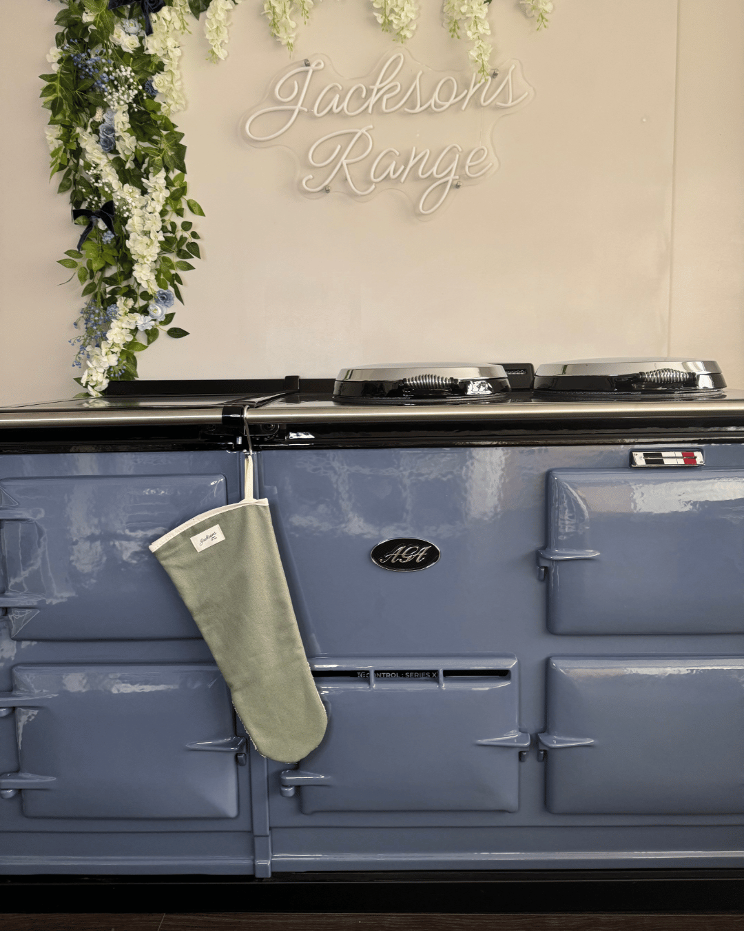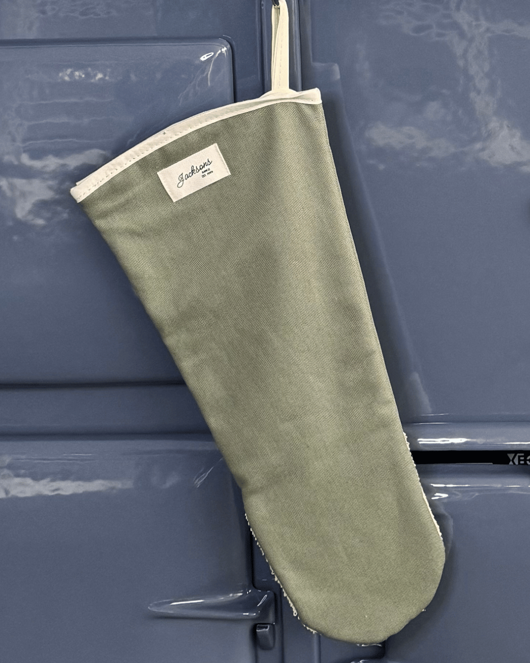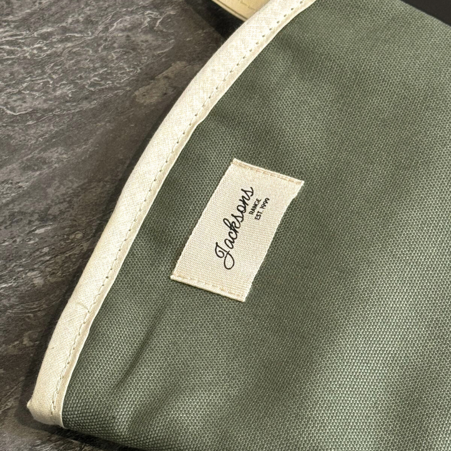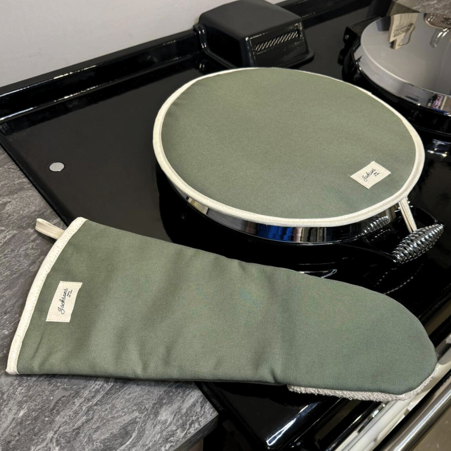 Introducing our ‘All things Pure’ textiles collection. A beautiful solid sage Gauntlet for any range cooker owner! Our pure and simple design can be matched with insulated hob covers, hanging towels and tea towels! These gauntlets are 44cm long, providing mid-arm protection when reaching deep into the oven, meaning it is well-suited to reach into the ovens of range cookers. Extremely high quality including a steam block barrier, made from 100% cotton, and very easy to use with an integral thumb grip providing extra maneuverability. Bringing a homely feel to any style of kitchen, finished with our ‘Jacksons Ranges’ woven cotton label.