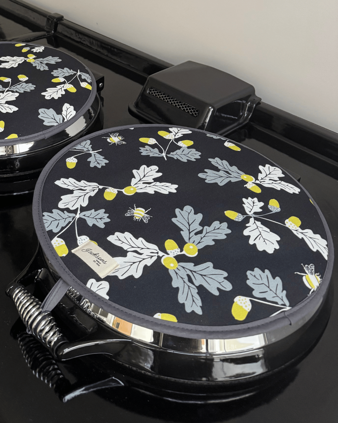 A beautiful Harvest pattern for any range cooker owner! Our simple design can be matched with gauntlets, hanging towels and tea towels! Highly insulating design, that creates a steam barrier and protects your lids. Made in the UK with 100% cotton for a thicker feel, complete with a hanging hook, helping to hang correctly when the lid is up. These hob covers bring a homely feel to any style of kitchen, finished with our ‘Jacksons Ranges’ woven cotton label.