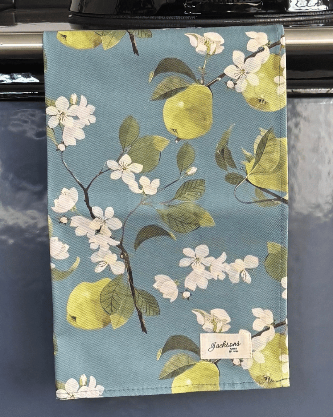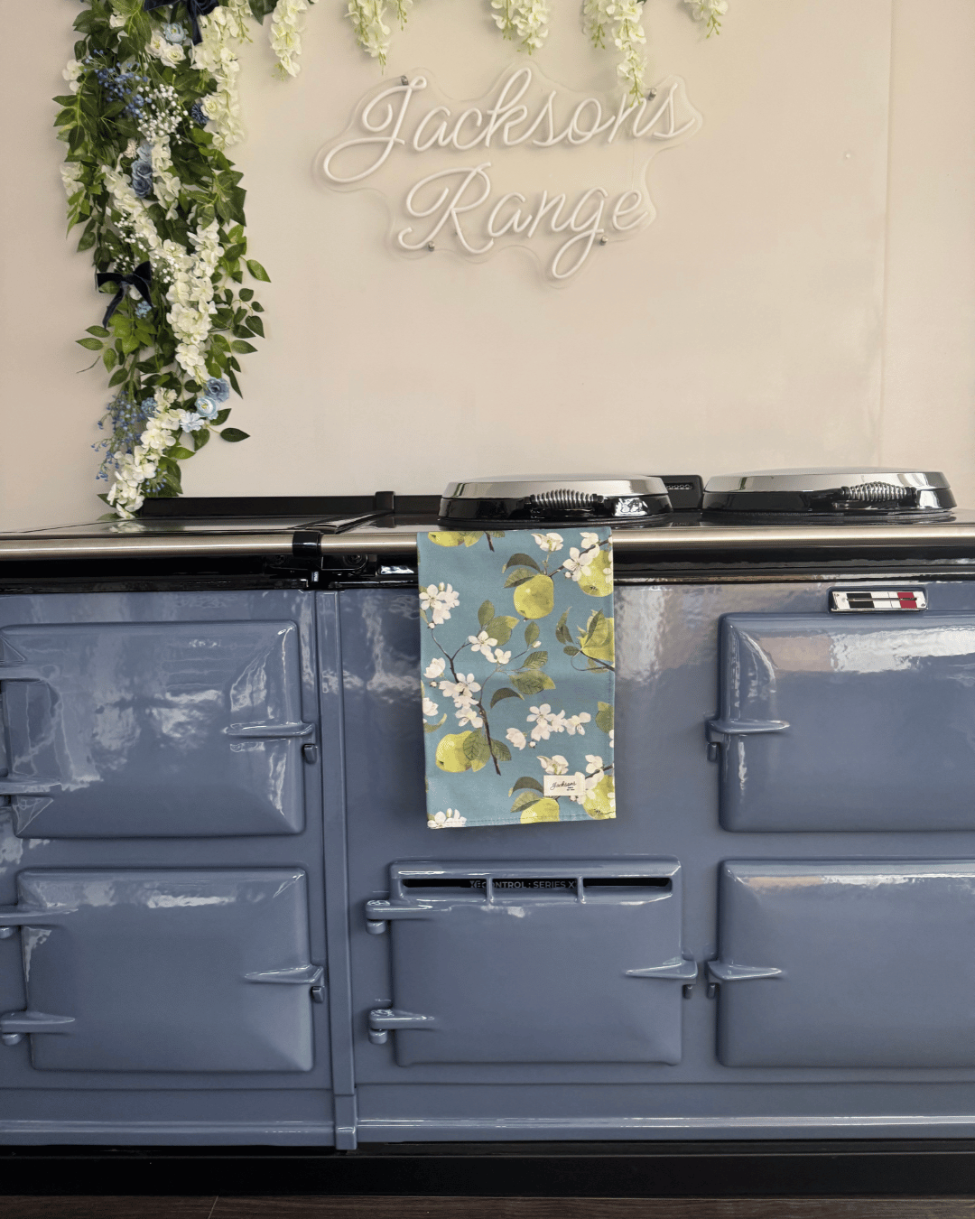 A beautiful Pear Tree tea towel for any range cooker owner! Our simple design can be matched with insulated hob covers, hanging towels and gauntlets! Extremely high quality, made from 100% cotton, and a loop located on the top left corner to hang up easily. Bringing a homely feel to any style of kitchen, finished with our ‘Jacksons Ranges’ woven cotton label.