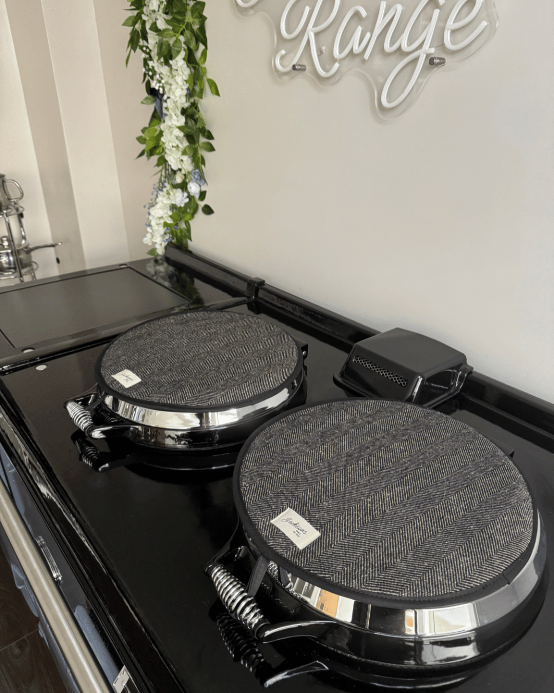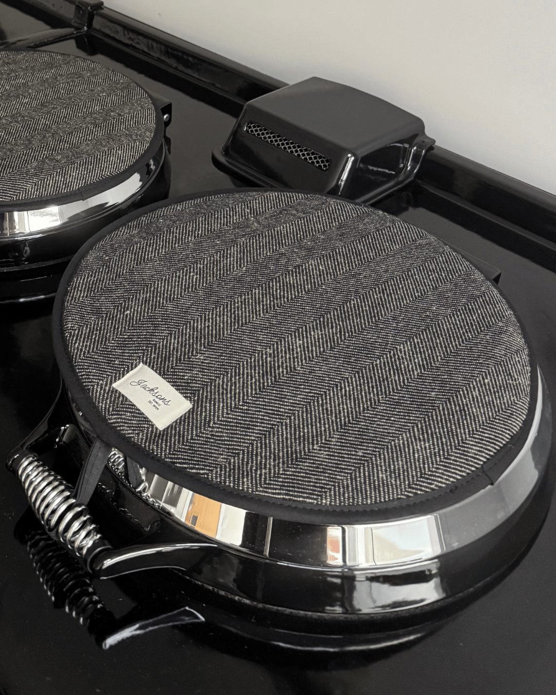 A beautiful Coal pattern for any range cooker owner! Our simple design can be matched with gauntlets, hanging towels and tea towels! Highly insulating design, that creates a steam barrier and protects your lids. Made in the UK with 100% cotton for a thicker feel, complete with a hanging hook, helping to hang correctly when the lid is up. These hob covers bring a homely feel to any style of kitchen, finished with our ‘Jacksons Ranges’ woven cotton label.